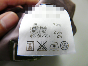 衣服のケアラベルを見ると、どんな繊維素材が使用されているのかが分かる「組成表示」が印字されてます。